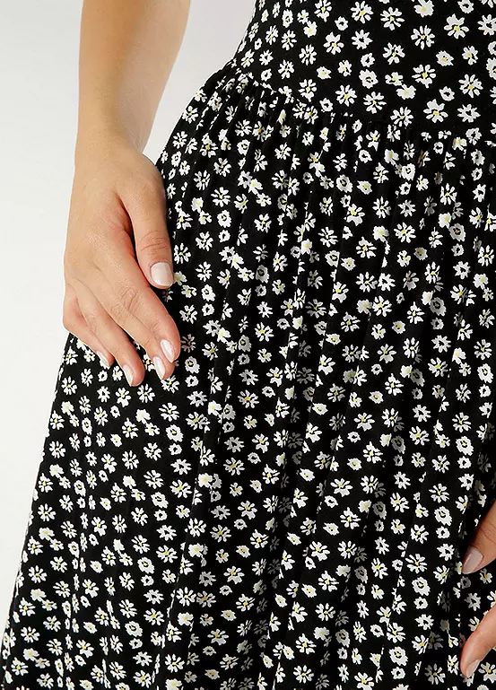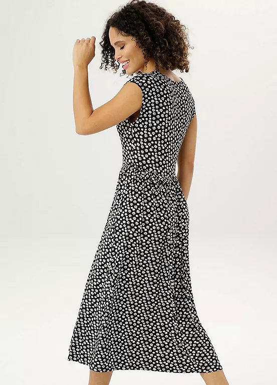 Adorable dress with a playful flower print. Features a round neckline and dropped shoulders and is made from a soft, flowing, sustainable viscose.