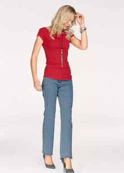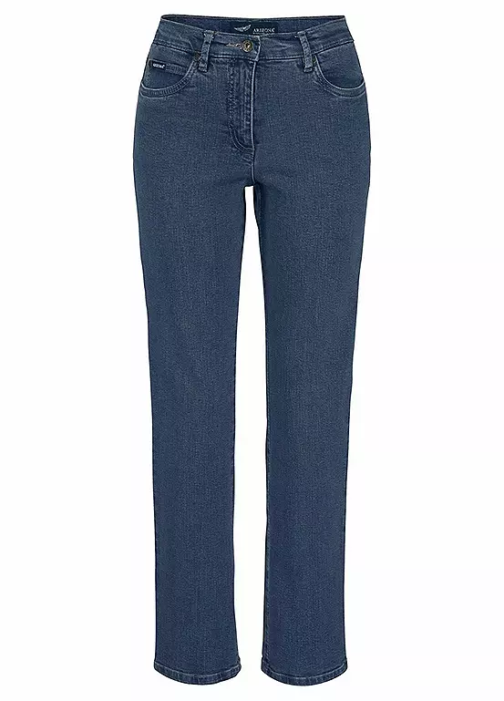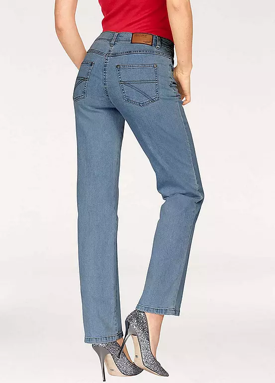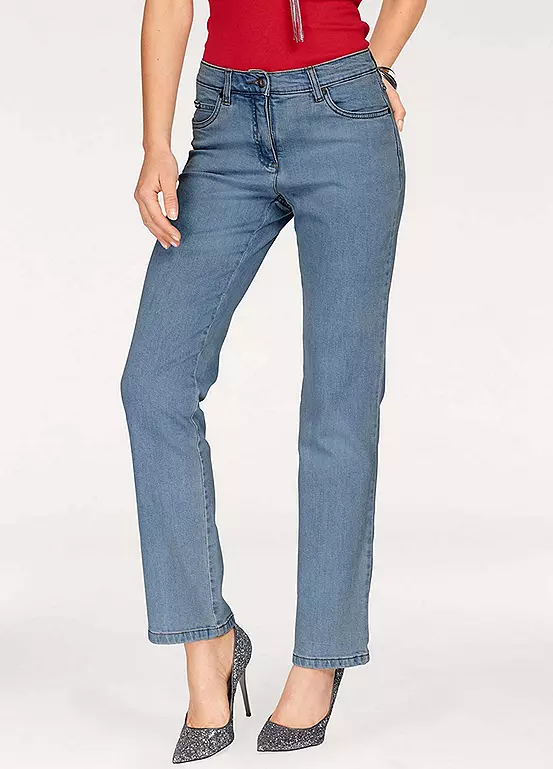 Comfortable jeans, great to wear thanks to the stretch fabric. The high waistband means a super fit. Casual cut with comfortable thigh and straight leg. 5-pocket style.
