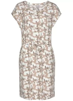 A trendy summer dress by Beachtime in an all-over floral print with short overcut sleeves and a round neckline. Made from soft jersey material, it features a drawstring at the waist and side pockets.