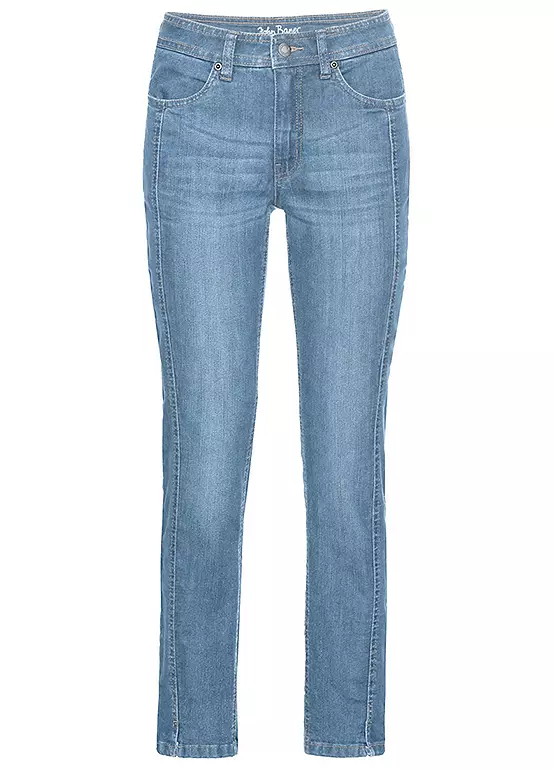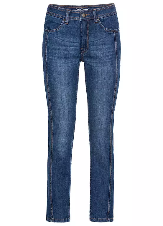 A pair of comfy stretch jeans styled with that cool modern ankle length look. These straight leg jeans have two pockets at the front and back.