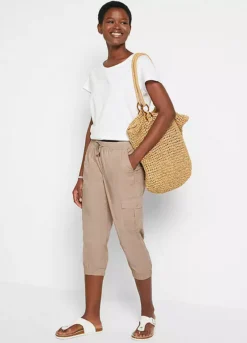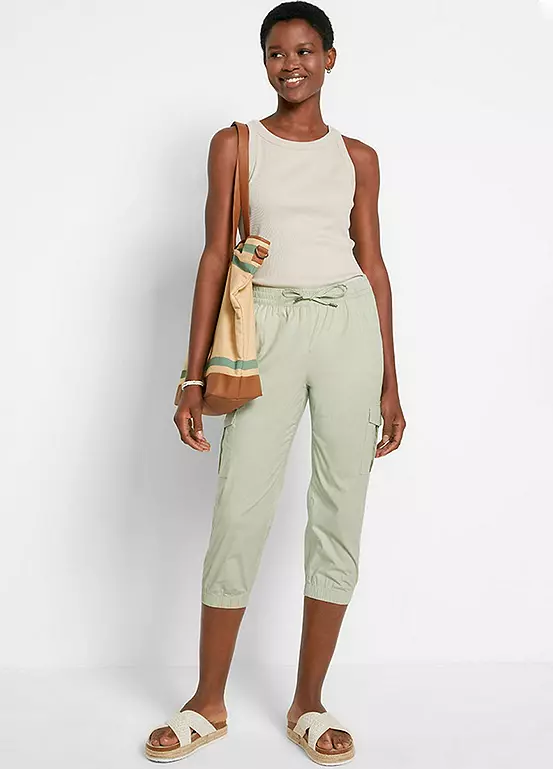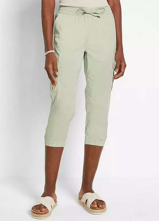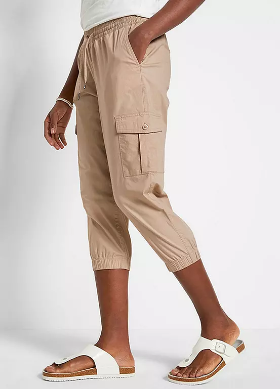 Cropped cargo pants with thigh pockets.