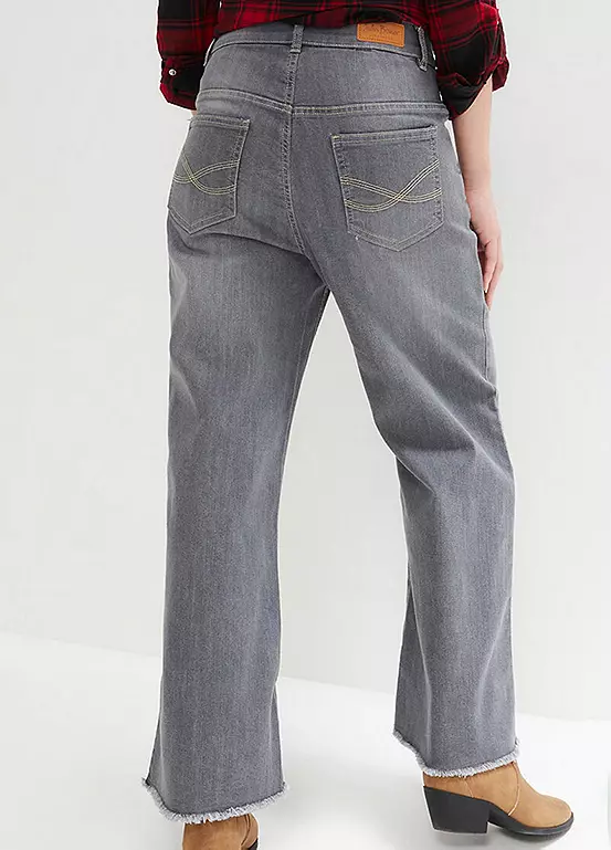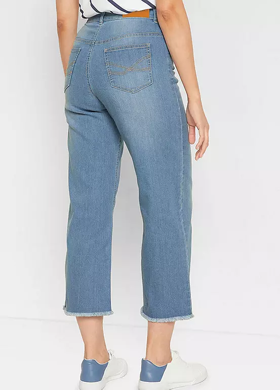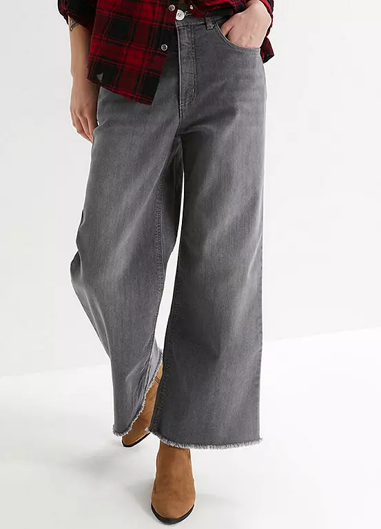 Cropped jeans with a wide leg.