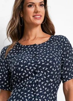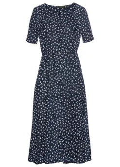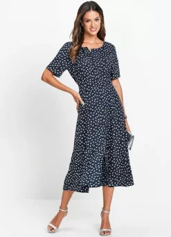 A classic cut dress featuring a button fastening down the front, side ties and a gently pleated skirt.