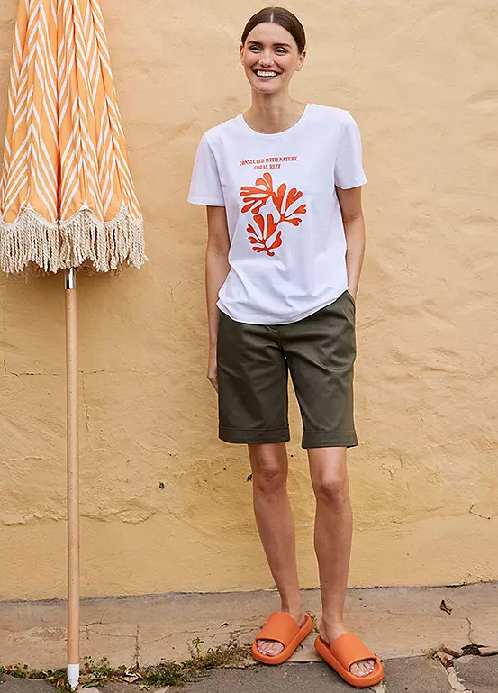 Thigh length shorts with side pockets.