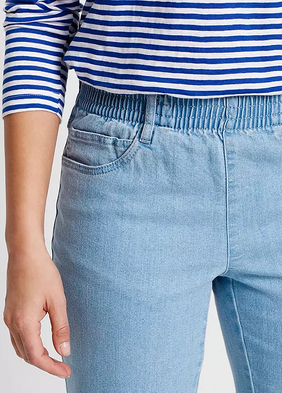 Perfect for the Summer season, these cropped leg cotton trousers feature an elasticated waist and are in a 5-pocket style.