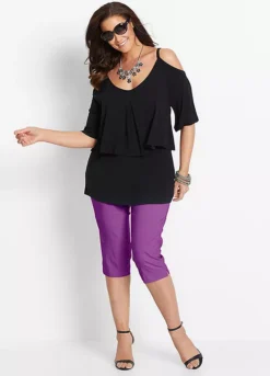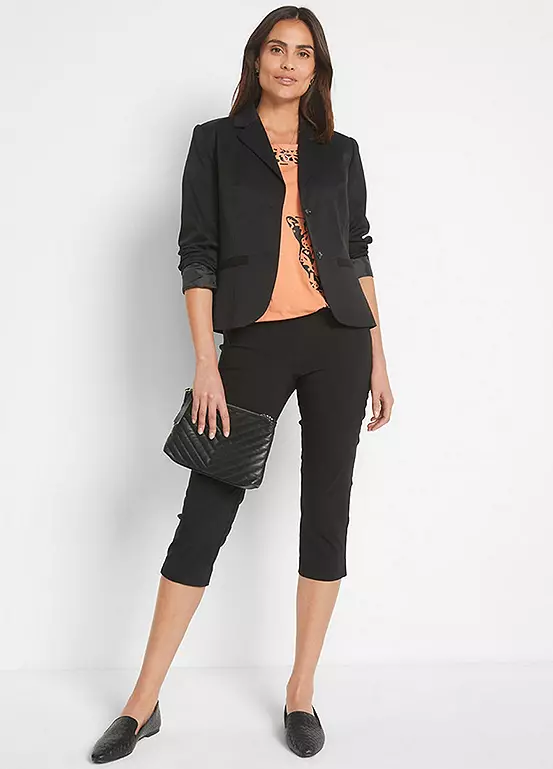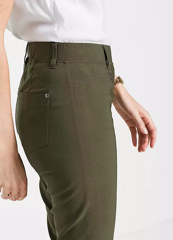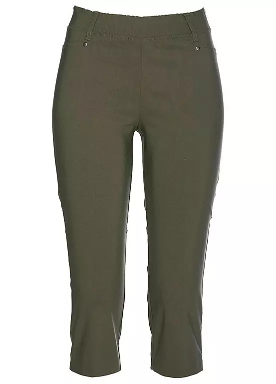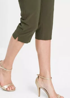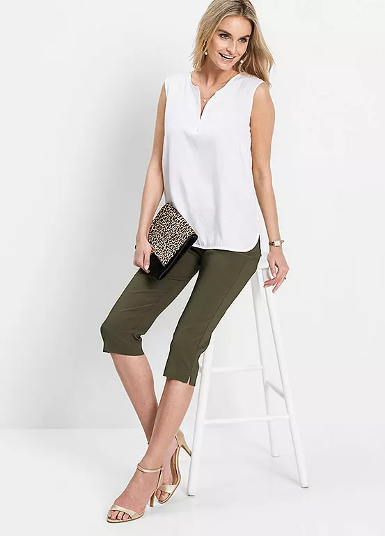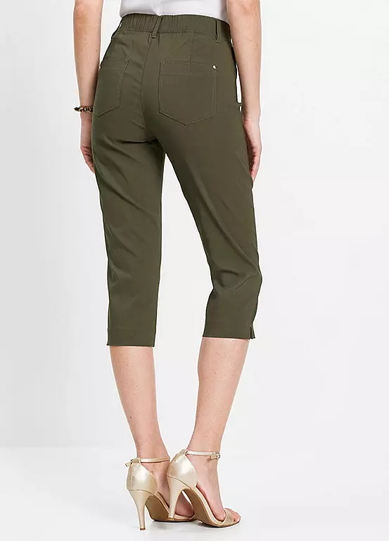 A pair of flattering summer capris with hem vents and an elasticated waist for a comfortable wear.