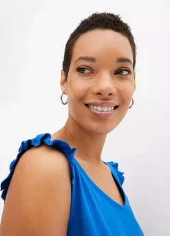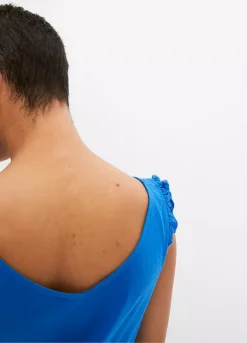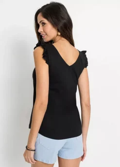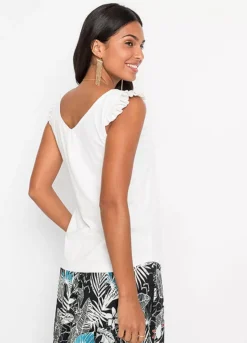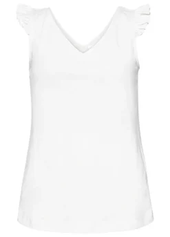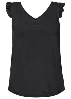 A refined sleeves top as it features frilly shoulder straps and is completed with a v-neck and is in a plain design.