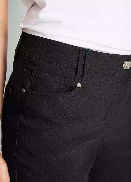 Smart, soft bengaline trousers with patch pockets at the back.