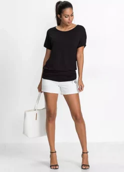 Casual and trendy top that has a scoop neck and short sleeves; which is in a loose fit and will help disguise any bad bits, such as flattening a fuller bust and the broad waist hem can be pulled down over your hips and bottom.