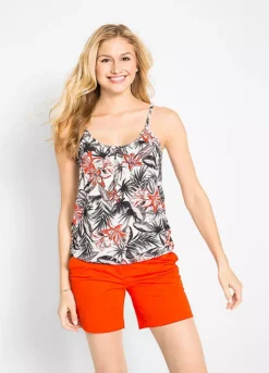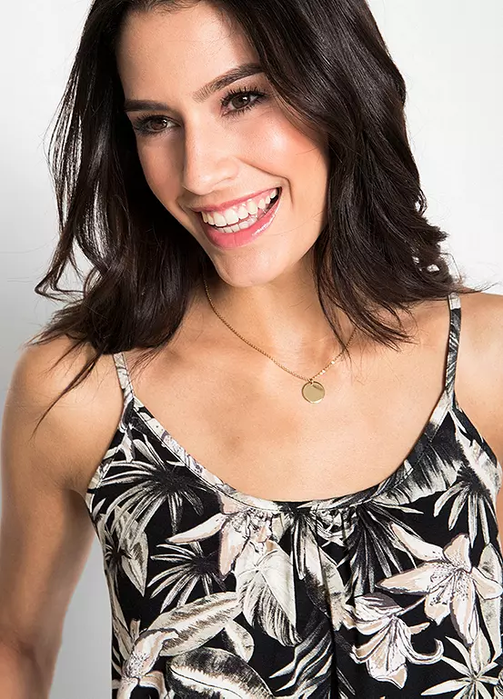A wonderfully styled camisole top that is a fantastic summer must-have. In a loose fit, this top has slim straps and a low rounded neckline, and features a tropical foliage print.