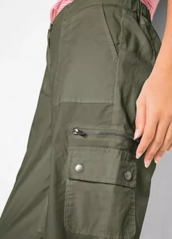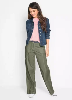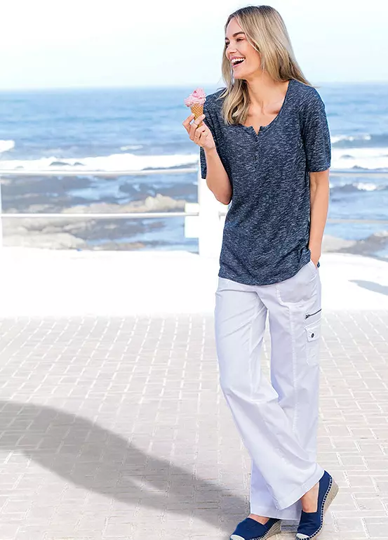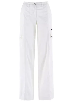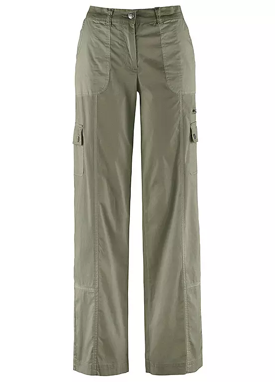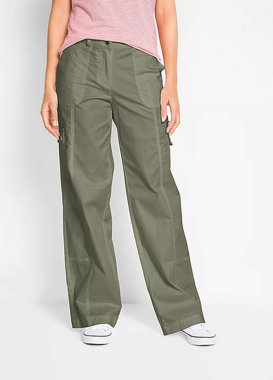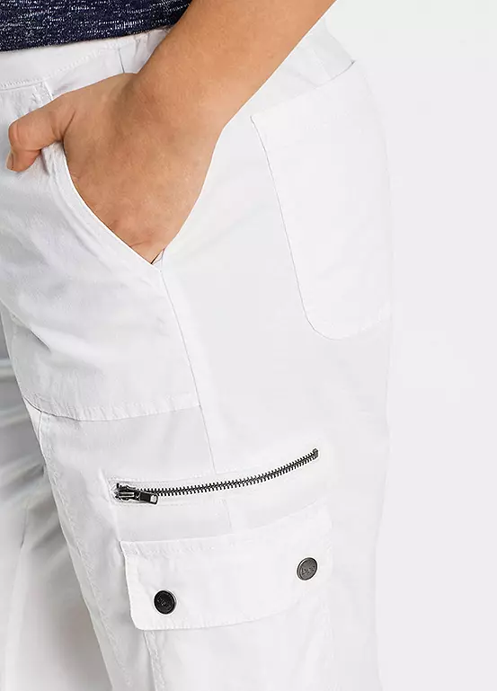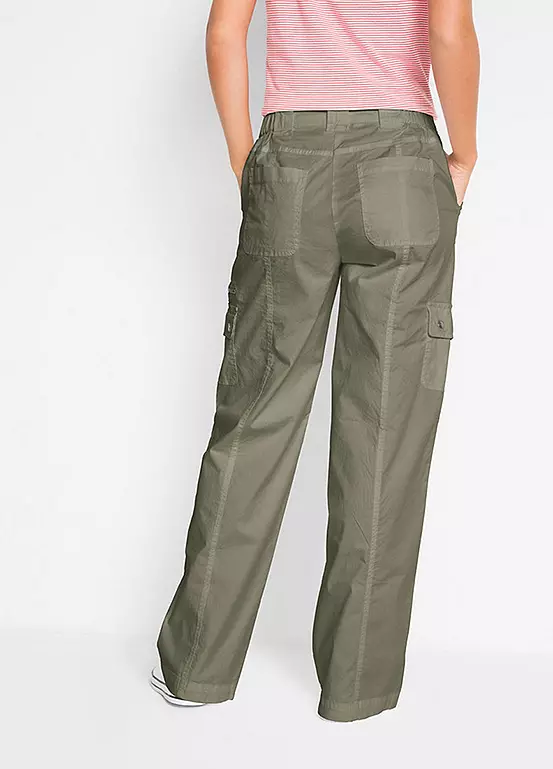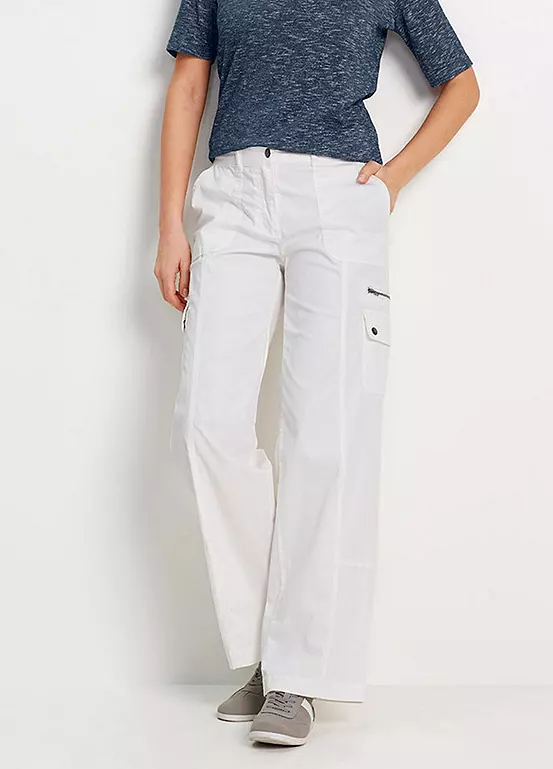 Loose fitting pair of stretch cotton trousers with handy cargo pockets.