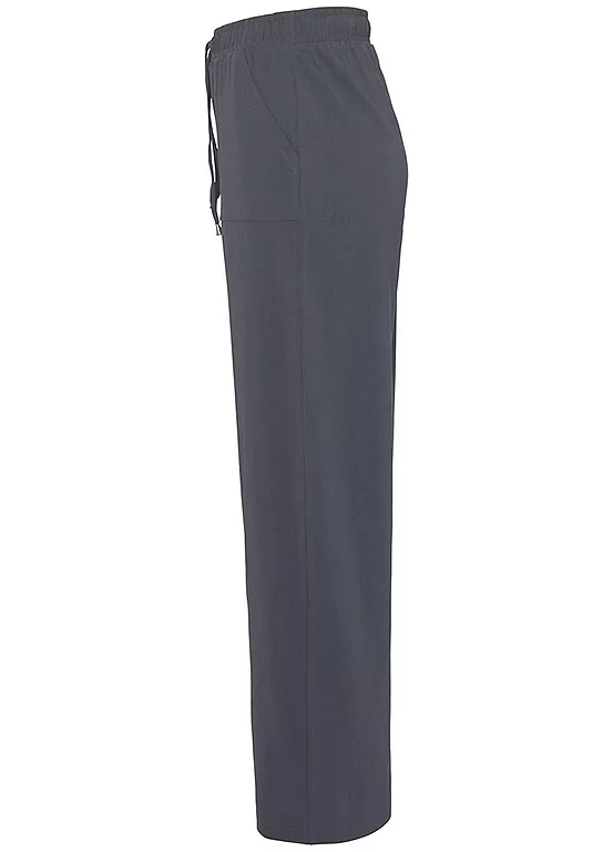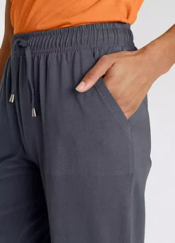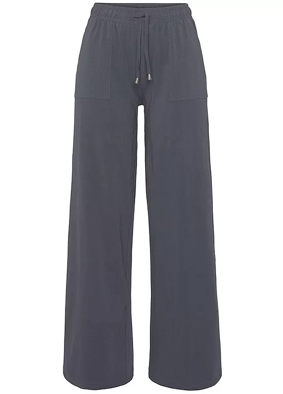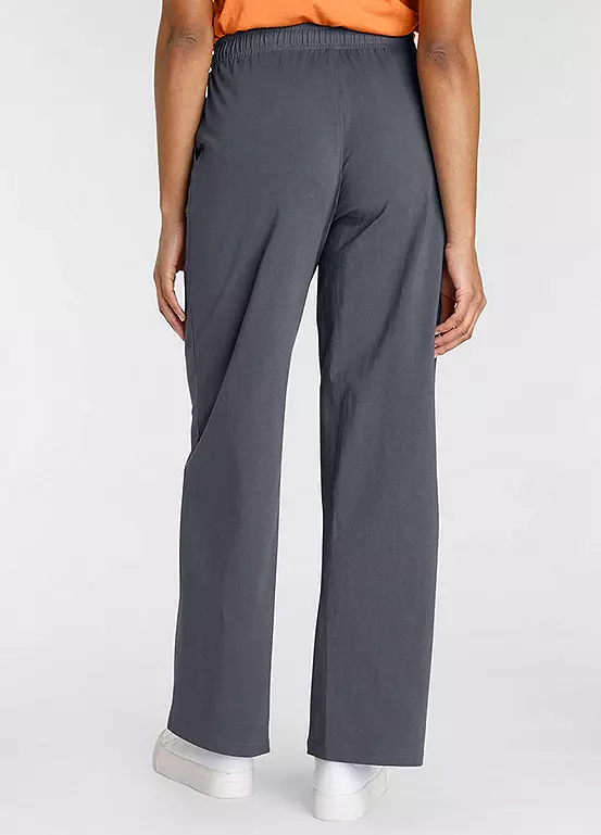Comfortable, wide leg jersey trousers in a relaxed fit. Featuring an elasticated waist with drawstring fastening and two patch pockets. Made from cotton that supports the “cotton made in Africa” initiative.