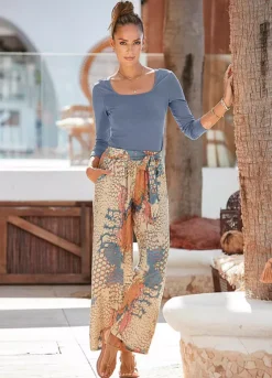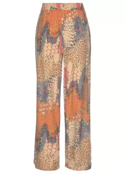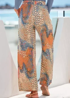 These pull-on wide-legged trousers are so stylish with their gorgeous all-over print, which makes each piece unique. The stylish wide fit and the comfortable slip-on waistband make them an indispensable companion. The smooth, woven material is comfortable to wear as it gently caresses your body and provides maximum comfort. Side pockets give the trousers a casual touch. Add flip-flops and a slim shirt on a warm summer night.