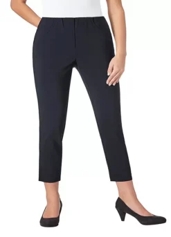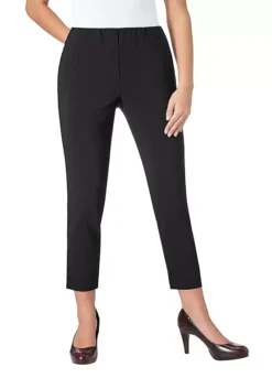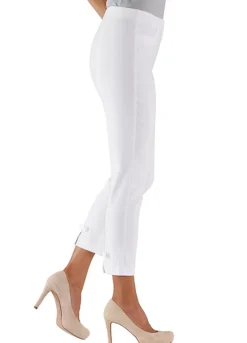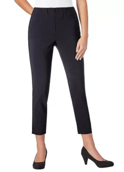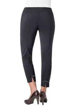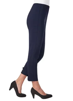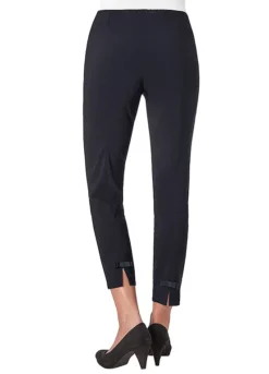 The high-quality, bengaline fabric is wonderfully flat and smooth, making these cropped trousers very comfortable! The fully elasticated waistband further enhances comfort for the wearer too. Very practical in a ’slip on’ design with a mock zip fastening and pockets for a smarter look. Finished with narrow, tapered legs with a small vent and a decorative bow on the back.