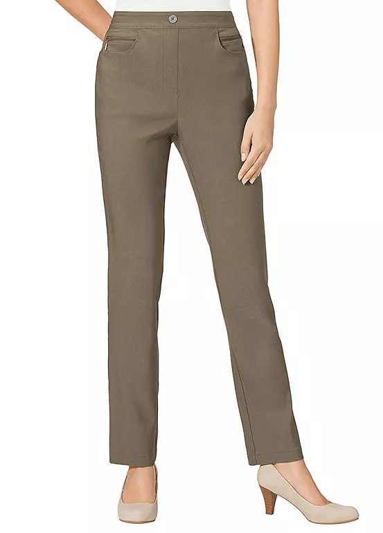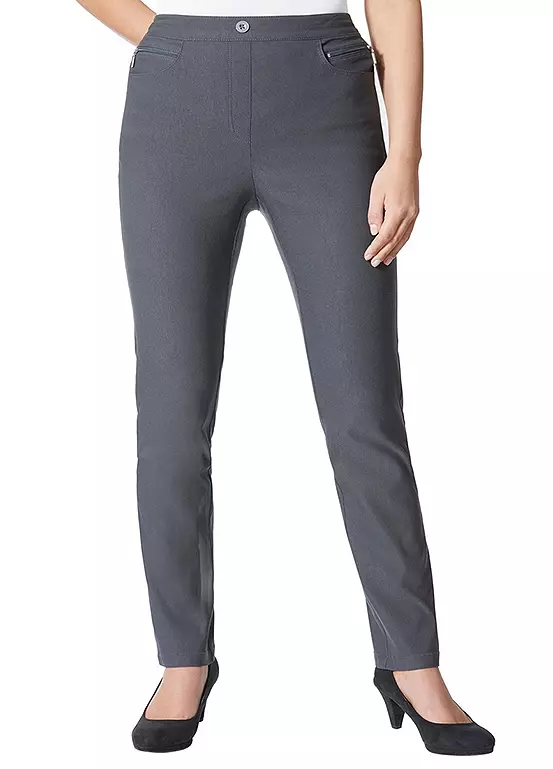 For a simple yet sophisticated look, these straight leg trousers are ideal. Featuring an elasticated waistband at the rear, as well as two pockets with decorative zips.