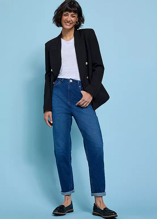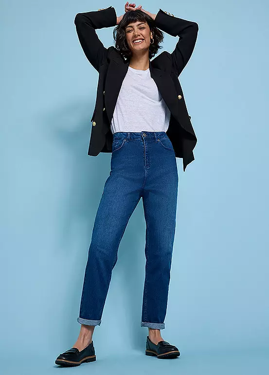 Mom jeans are a wardrobe staple, ours feature soft comfort stretch denim, with a high waist in a fresh indigo colour way. We’re loving this style, casual with a tee and trainers or paired with a bodysuit, heels and a leather jacket for a smart casual look.
