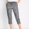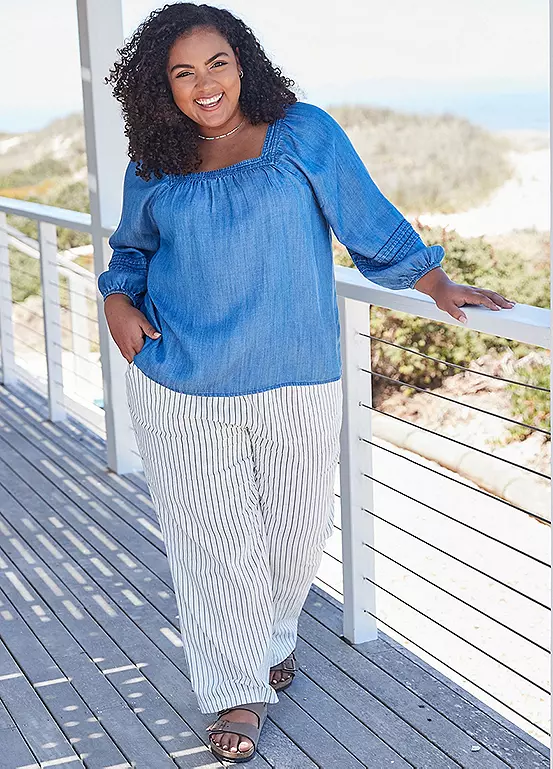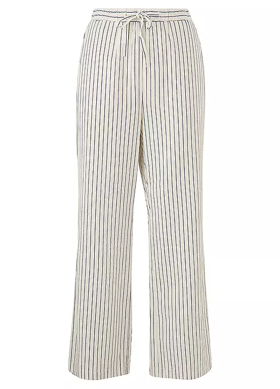 A pair of breezy linen trousers with handy pockets and a comfy elastic waist in soft subtle stripe.