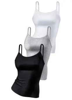 Pack of 3 spaghetti strap vest tops in a fine rib fabric without side seams in a slightly fitted design.