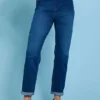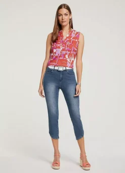 Chic and versatile cropped skinny jeans with a contrasting stripe on the side and a casual used look. They come in a five-pocket design with an asymmetric hem. Sophisticated seams create a push-up effect for your bottom.