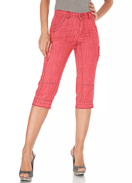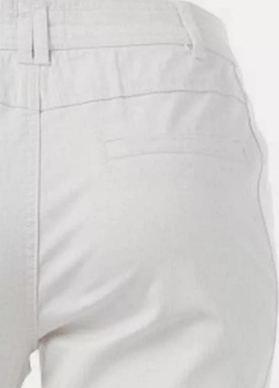 Cropped, straight-cut trousers with slant pockets and elastane for a perfect fit. Great for summer, they come in a regular fit with a slightly lower waist.