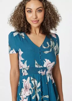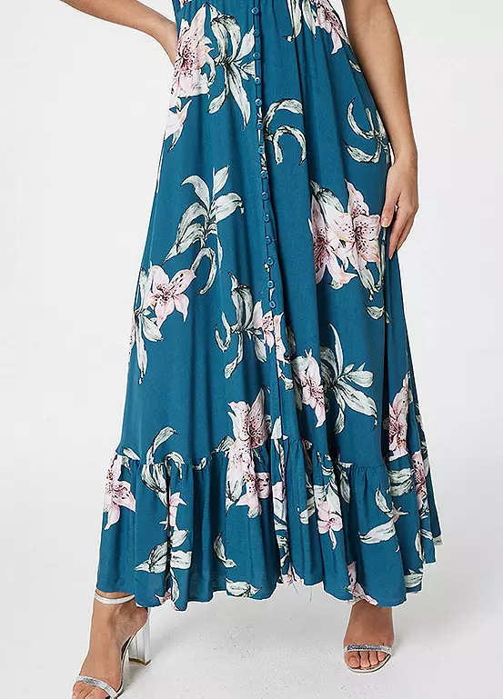 Every closet needs a vibrant maxi dress like this one. With a V-neck, button front, short sleeves, a shirred waist and a flared maxi length skirt. Made from 100% breathable viscose, it’s the perfect addition to you’re your weather capsule wardrobe. Pair with neutral heels for a chic style that’s great for a daytime occasion.