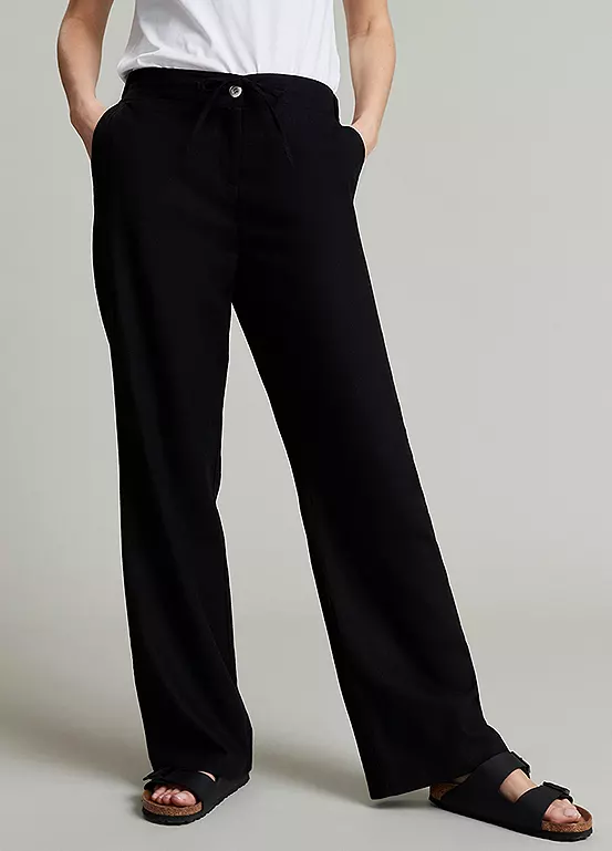 As well as flat front finishing, elasticated smooth back waist and self fabric tie. Style with a printed came and sandals for a sunshine ready look.