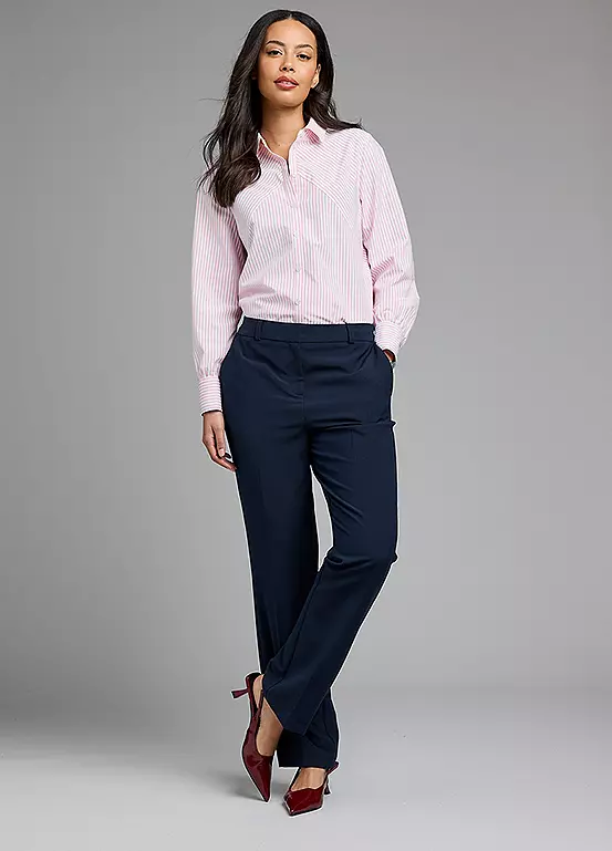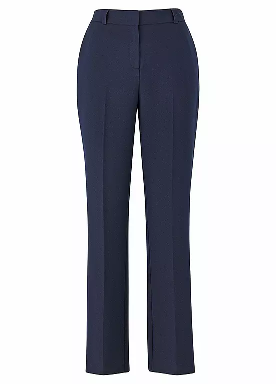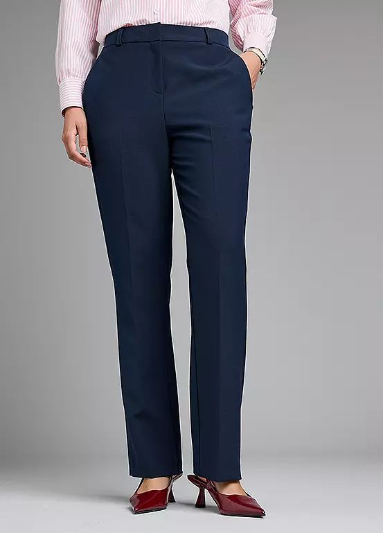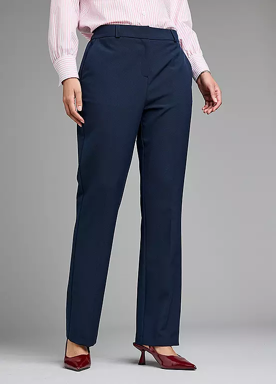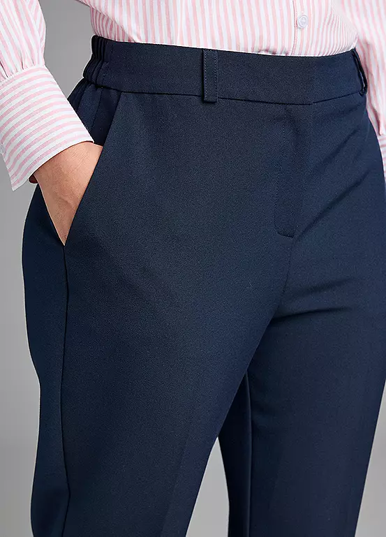 We have improved the fit and fabric of our best selling straight leg trouser to make these even better! With side back elastic for discreet added comfort all day long our straight leg trouser is a must have for all year round! This flattering style will ensure you look elegant on any occasion. Perfect to wear to the office or dress down for a more casual weekend look. Featuring a flat waist band to the front and elastic at the side for added comfort and no gaping. Front fly fastening and two handy side pockets. Pressed creased to the front and back.