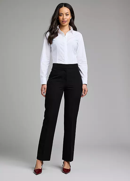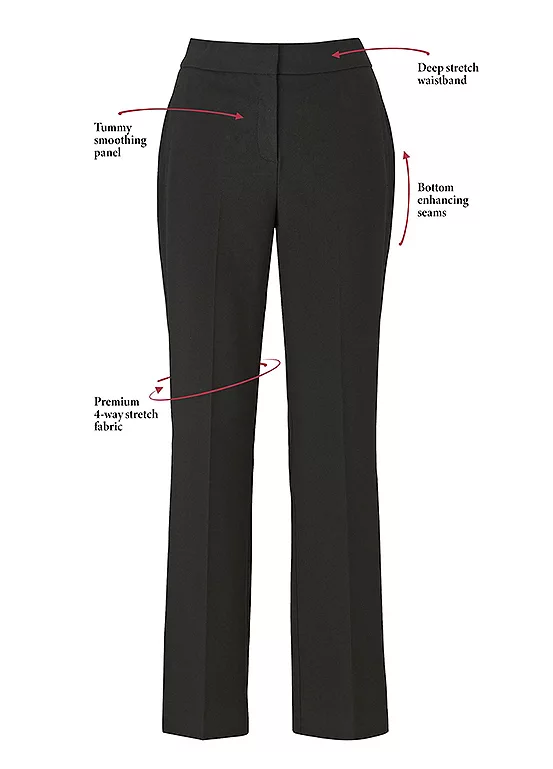 Our premium shaping trousers are innovatively designed to flatter your figure and enhance your shape, with hidden stretch tummy panel to smooth your silhouette and deep stretch waistband for added comfort. Made in a premium 4 way stretch fabric, designed with cleaver seaming detail to shape and lift your bottom. These will become the only trousers you need in your wardrobe.