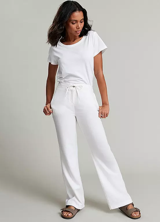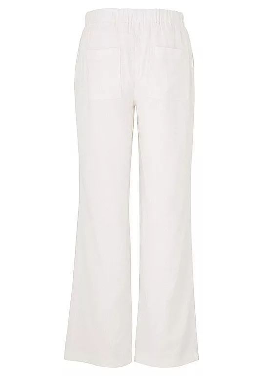 As well as flat front finishing, elasticated smooth back waist and self fabric tie. Style with a printed came and sandals for a sunshine ready look.