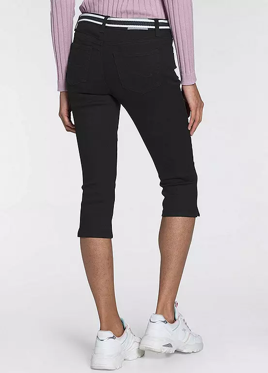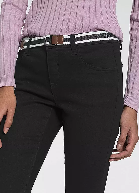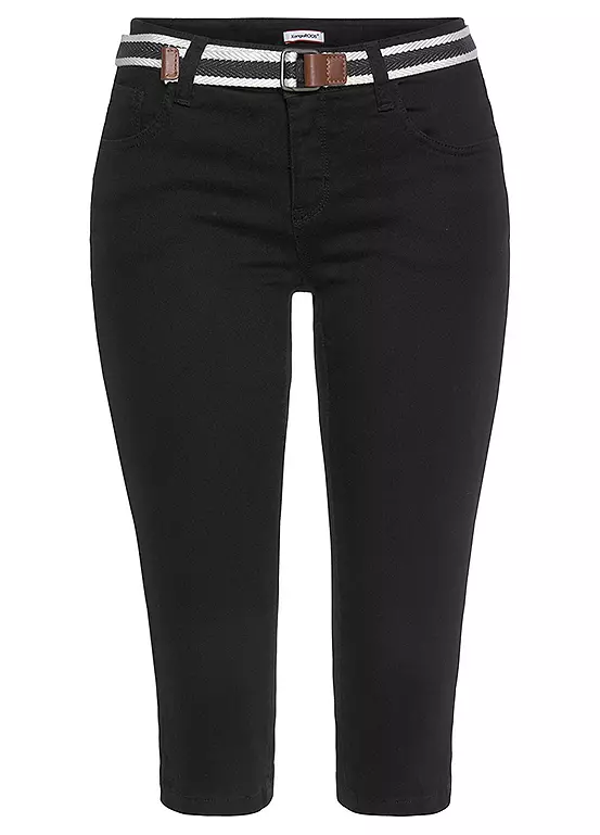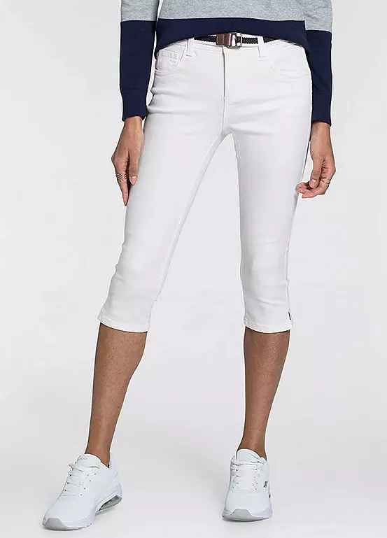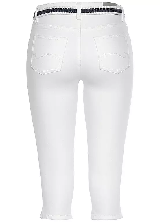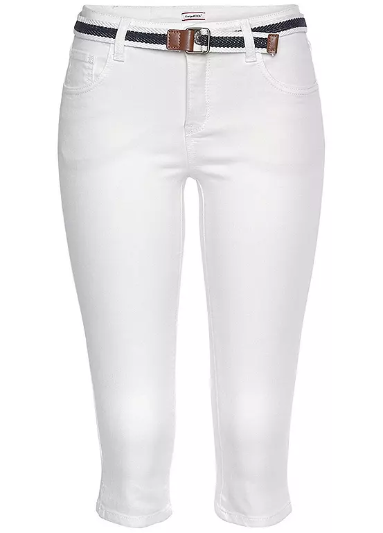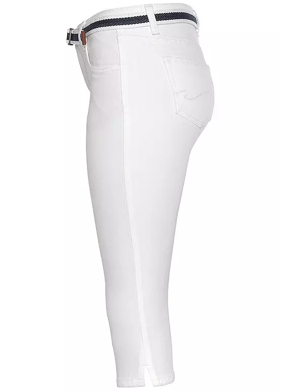 Cropped jeans in a stretch cotton fabric with a matching belt and a slim leg shape. Perfect for weekend wear.