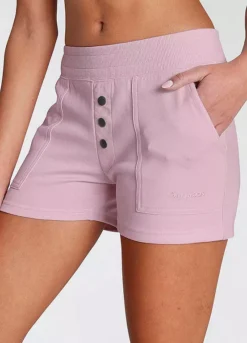 Casual lounge shorts with a wide waistband and loose fit for great comfort. Finished with decorative buttons on the front and practical large pockets.