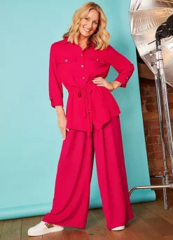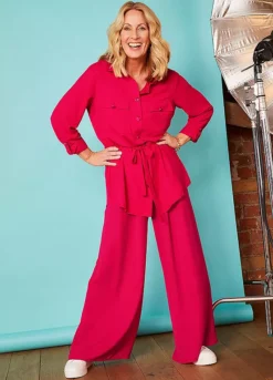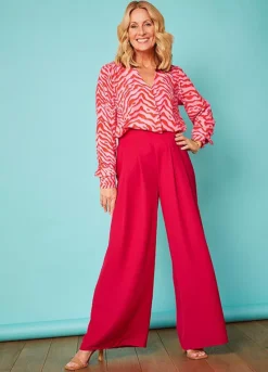 These statement wide leg trouser give a pop of colour and drama to any outfit in a soft flowing fabric these are perfect for days out with the girls.