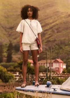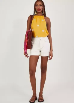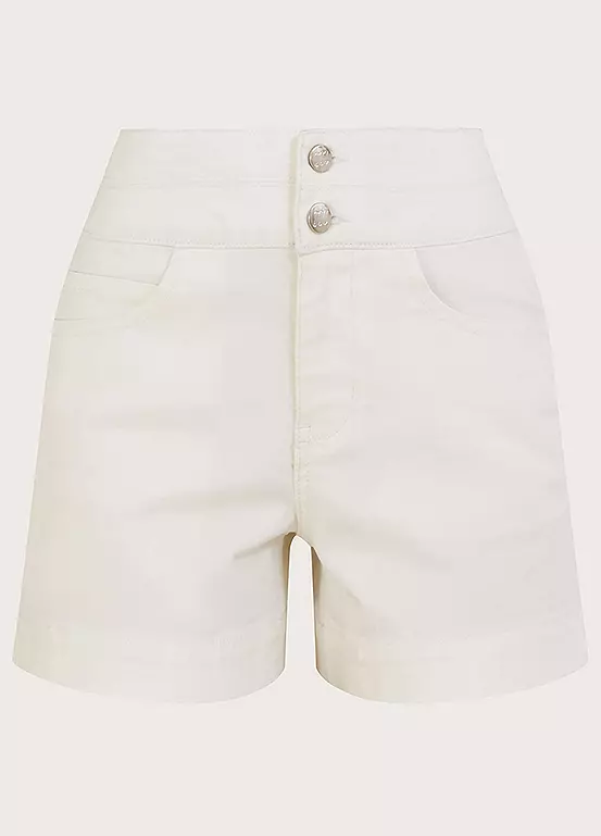 Summer just isnโt the same without a pair of denim shorts on hand. This pair is designed with a high-waisted silhouette and a secure double-button fastening to finish. Style them with a simple cami, or opt for a more smart-casโ look with a light and airy blouse.