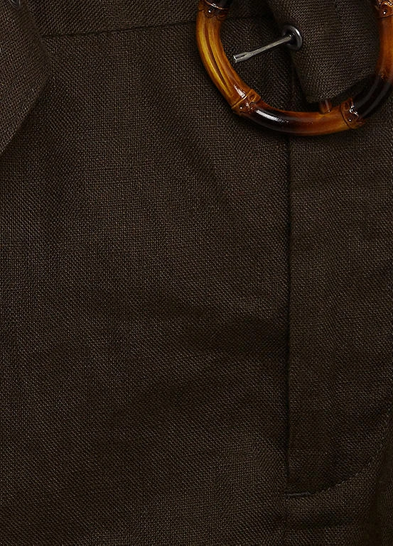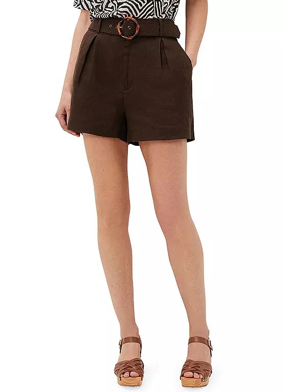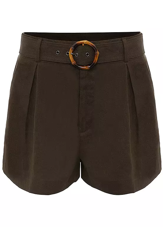 Your new go-to summer shorts. Cut in a high-waisted silhouette, these shorts are designed with inverted pleats and handy pockets and finished with a matching tortoiseshell belt. Wear with any of your tops or blouses and sandals for a casual summer look.