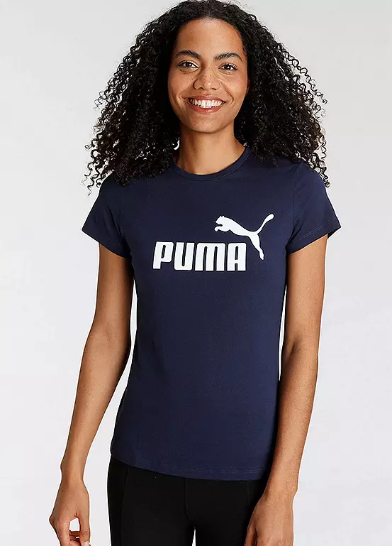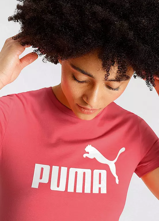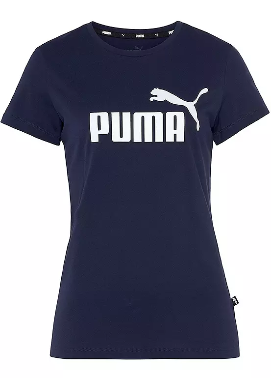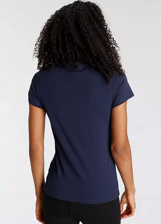 An effective sports T-shirt featuring a large front brand print, with short sleeves and round neck.