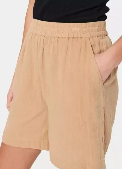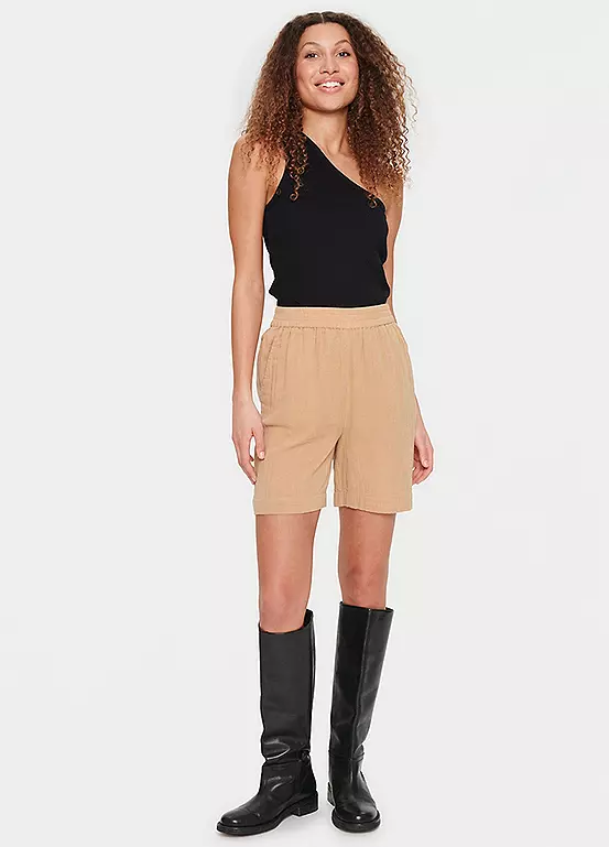 The Ulrika shorts are a simple and comfortable pair of everyday shorts. They are made in a soft and light cotton fabric and has practical side pockets. The waistband is made with an elasticated smock band. The shorts have a loose fit and are cut mid-thigh.