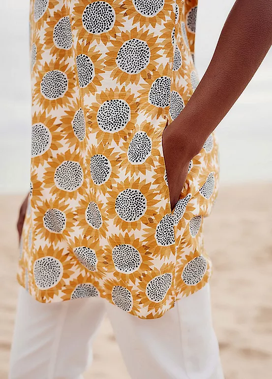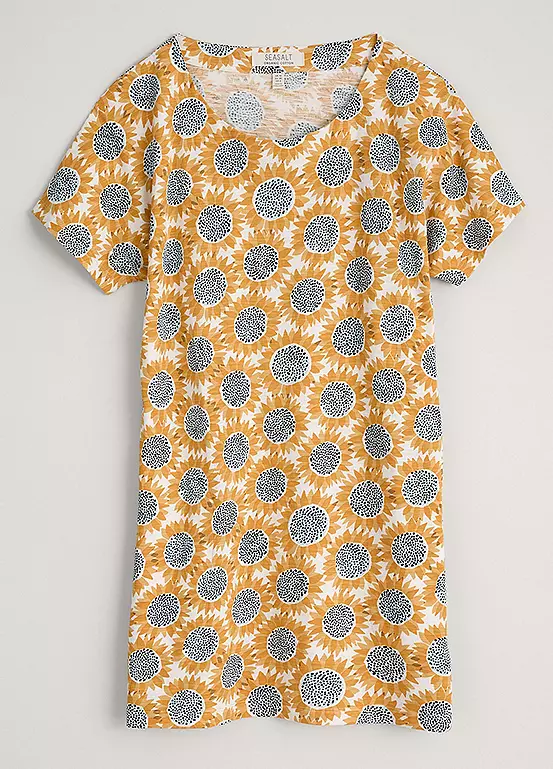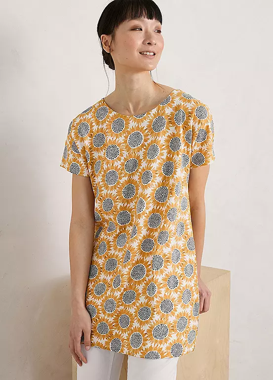 Summery, organic cotton jersey tunic with short sleeves and a soft swing shape.