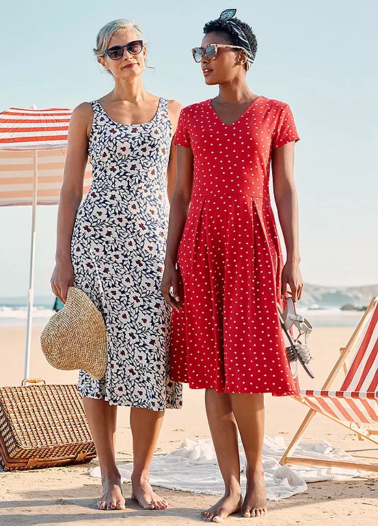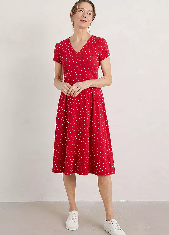 Short-sleeved fit and flare dress in soft organic cotton jersey with a touch of stretch.