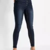 The forward side seam, the decorative pockets and the V-shaped seams at the front give the uncomplicated jeans a fashionable update. Two buttons and a zip and an elastic insert is incorporated at the back of the waistband for an optimal fit. The elastic denim quality is particularly comfortable to wear thanks to the high cotton content.