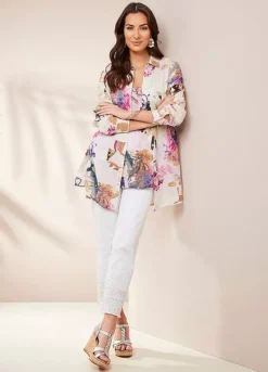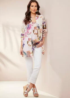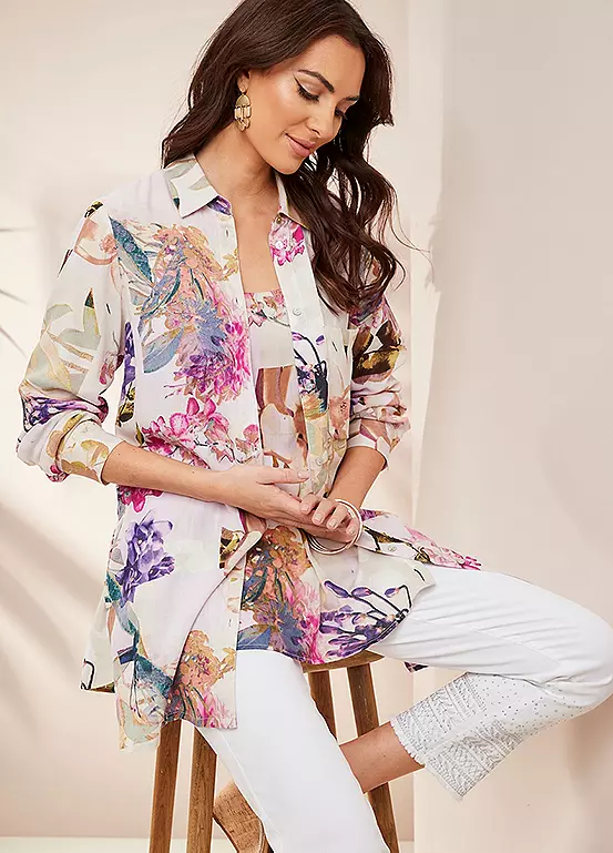 Our floral print longline shirt is crafted in soft viscose, perfect for your summer getaways. The fully opening front and roll-up sleeves are the perfect combinations. Team with our matching cami for a co-ordinated look.