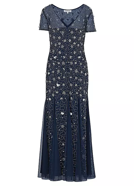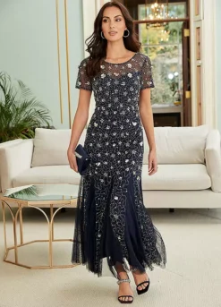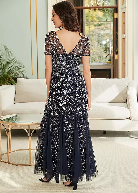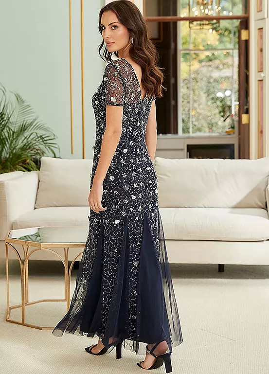 This beautiful all-over beaded maxi dress will definitely turn heads when you wear it! In a maxi length with short sleeves, it comes with all-over beading and sequin detail. Perfect for weddings or any other special occasions.
