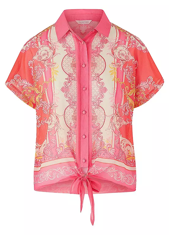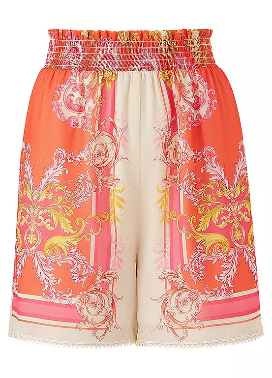 This short co-ord set is perfect for your summer holidays. The set comes with a short sleeves button through print blouse with tie front fastening and matching shorts with a fully elasticated waistband they are fully lined.