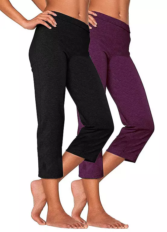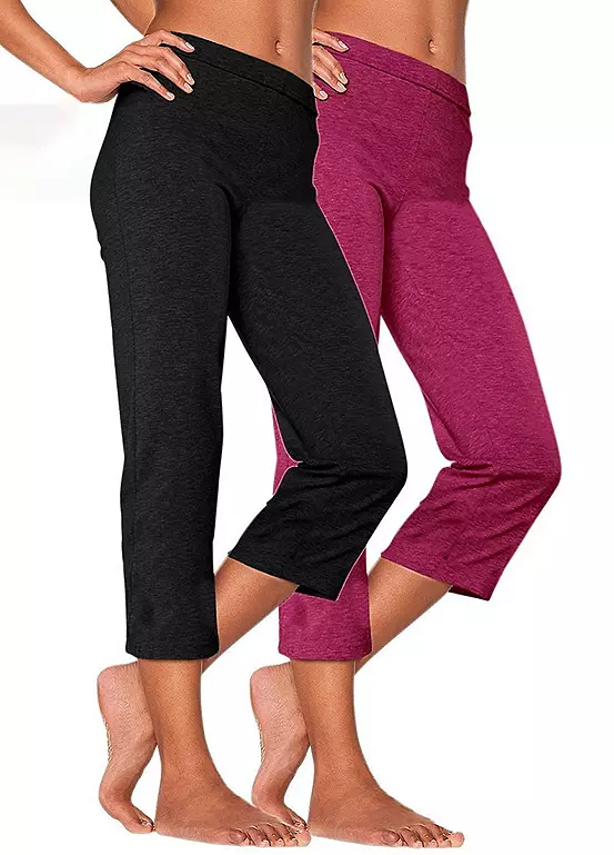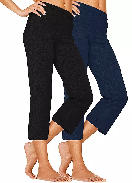 Pack of two casual capri trousers in a soft jersey fabric. Each pack includes one black pair and one coloured pair.