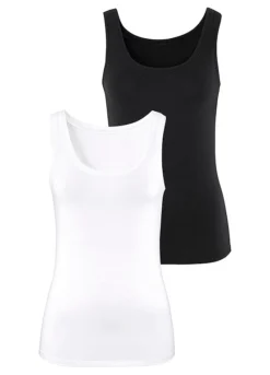 Basic vests in a close fit with a round neck and narrow straps. Perfect for every day wear and a wardrobe essential for the summer.