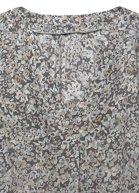 This blouse is just perfect with shorts or light capris. The blouse is made from soft viscose fabric and impresses with its figure-flattering fit. The deep V-neckline with box pleat. Perfect on holiday or hot summer days.