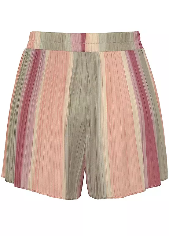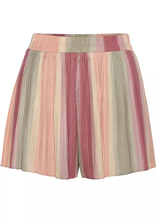 Stylish summer shorts with a high waist and a wide hem. In a relaxed fit with a subtle shiny, pleated fabric.