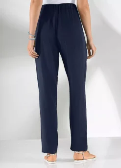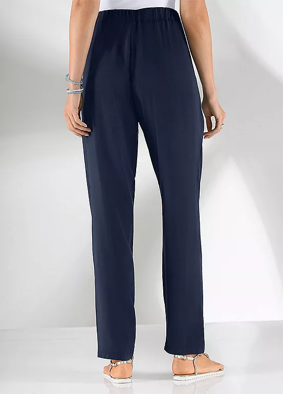 Versatile slip-on trousers with comfortable, fully elasticated, wide waistband. 2 side pockets. Light, summery fabric.