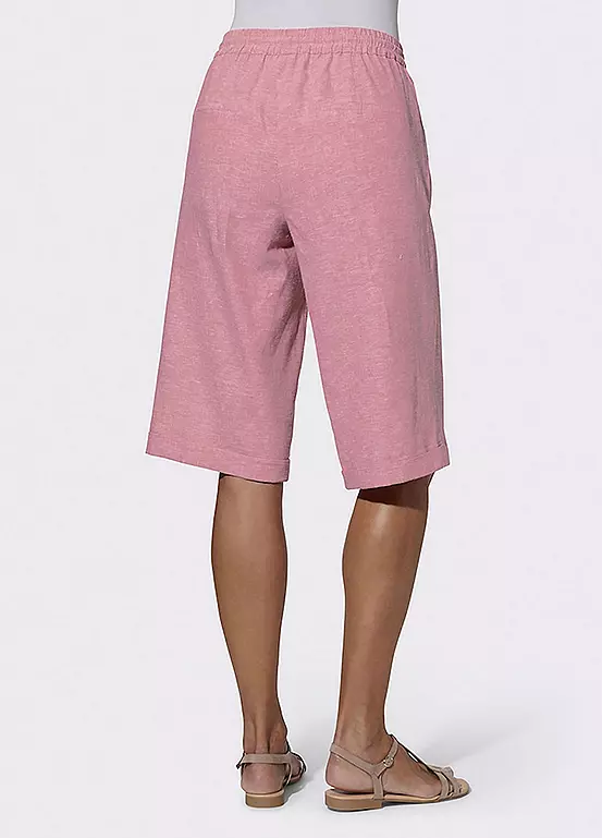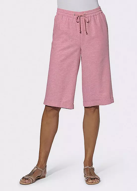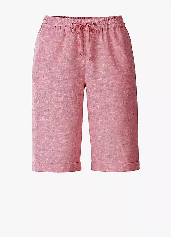 These summery Bermudas in a linen and viscose blend are impressively comfortable. In a marl look, they feature an elasticated waistband with a drawstring, two front pockets, two back pockets and fixed turn-ups at the leg hems.