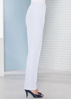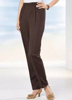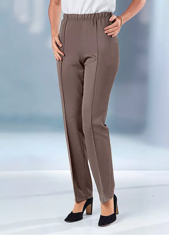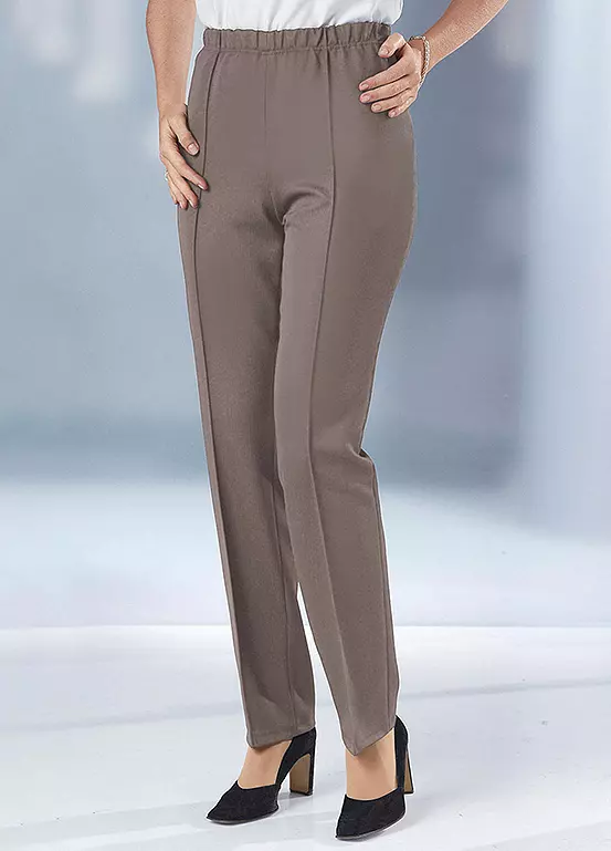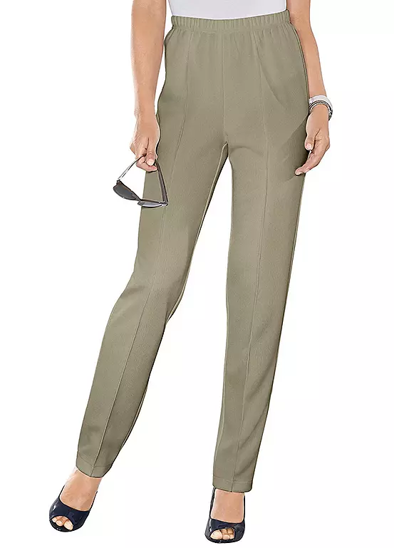 Smart looking and comfortable trousers that have a fully elasticated waistband and raised seams to add extra elegance. These are made from an easy-care fabric.